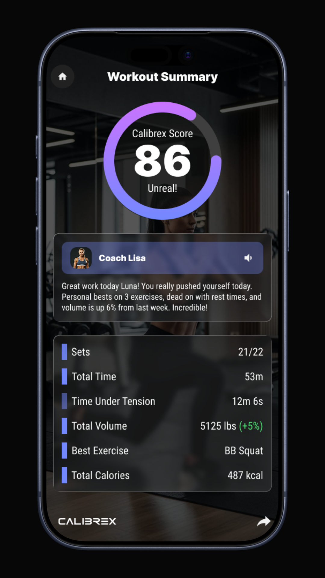 No two workouts are the same with Calibrex. As you get stronger, so does your membership - translating your data and habits into actionable workout insights, all in real-time.